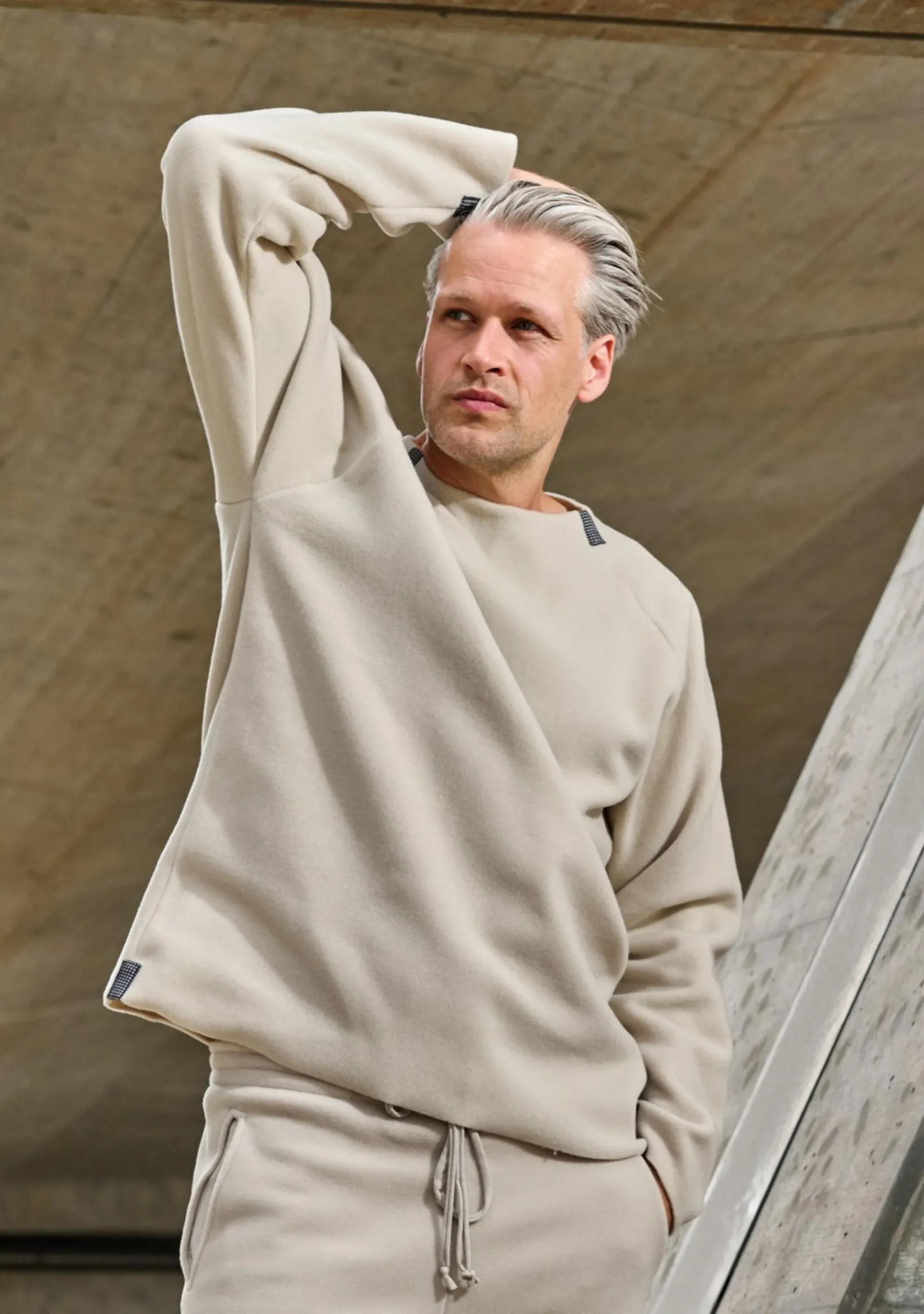 Vores klassiske fleece-pullover med rund halsudskæring og signatur-grosgrainbånd i hver side af halsen. Denne lette pullover er blød, let og åndbar. Bær den med jeans, habitbukser eller et par joggingbukser til rolige søndage derhjemme. Et garderobemæssigt must.