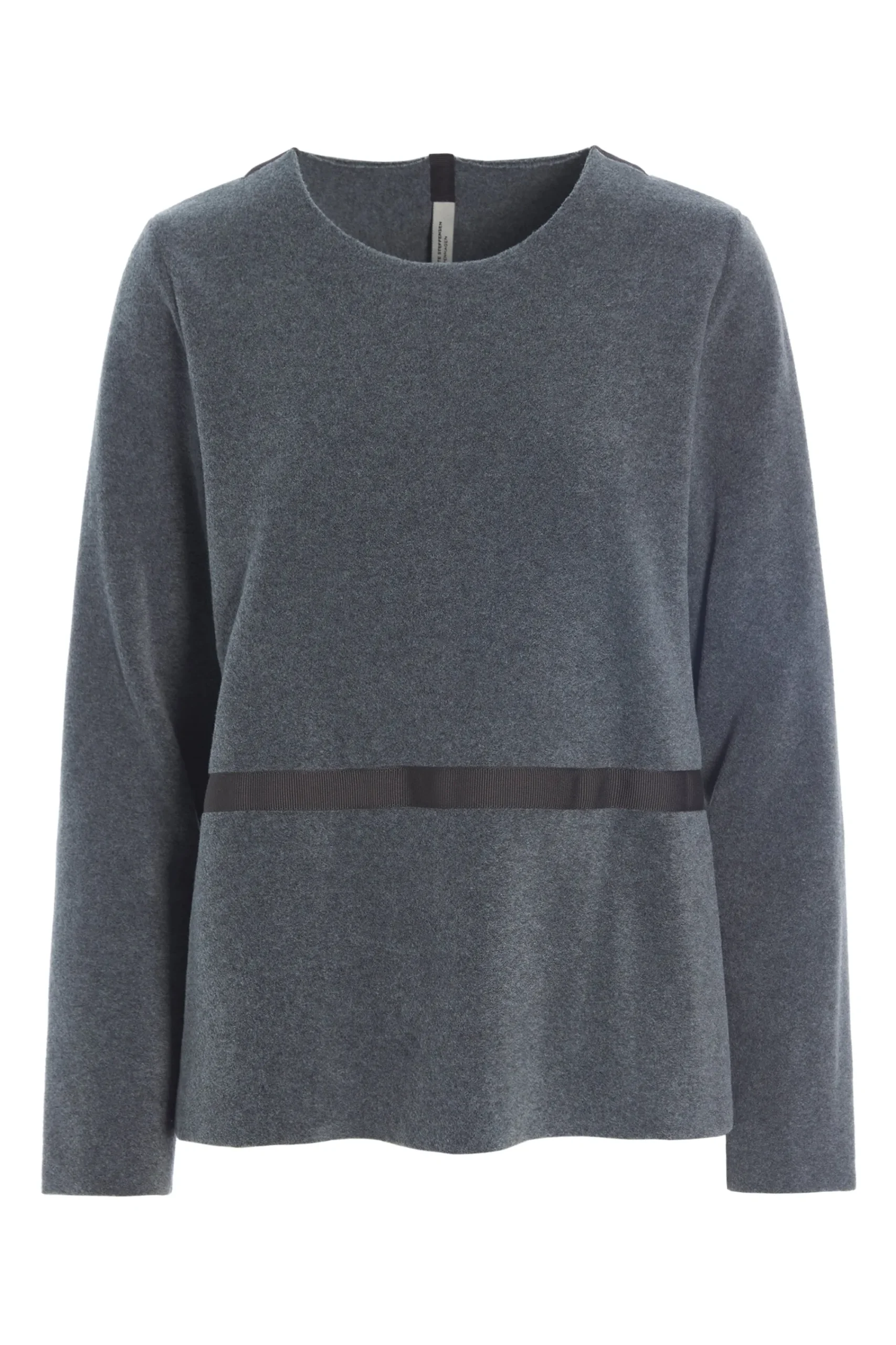 Denne klassiske pullover har en rund hals, lange ærmer og et grosgrainbånd omkring taljen.