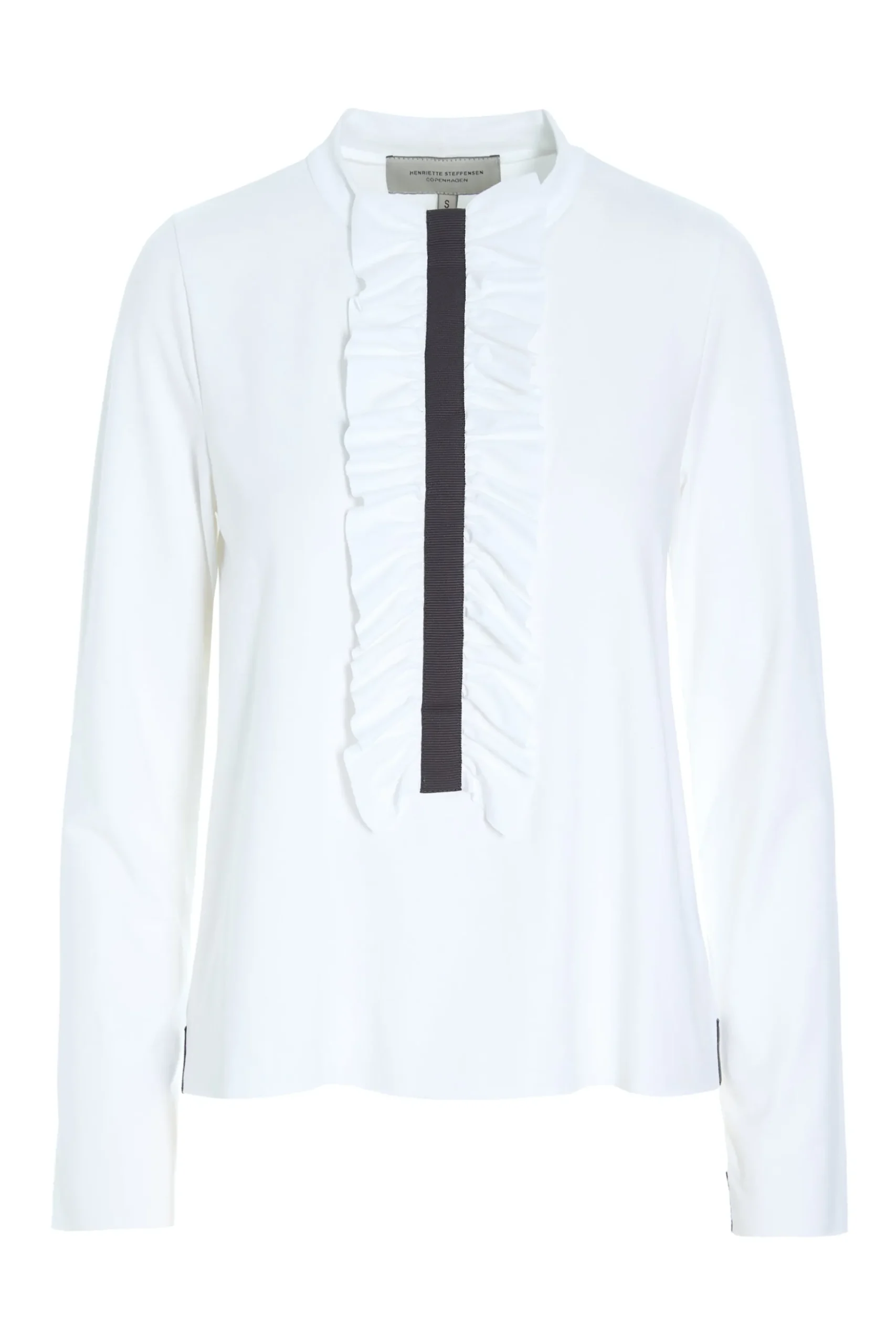 Feminin bluse med flæser foran og vores karakteristiske grosgrain-bånd. Brug den under en blazer for et klassisk velklædt kontorlook eller som det feminine touch til et par rå jeans og støvler.