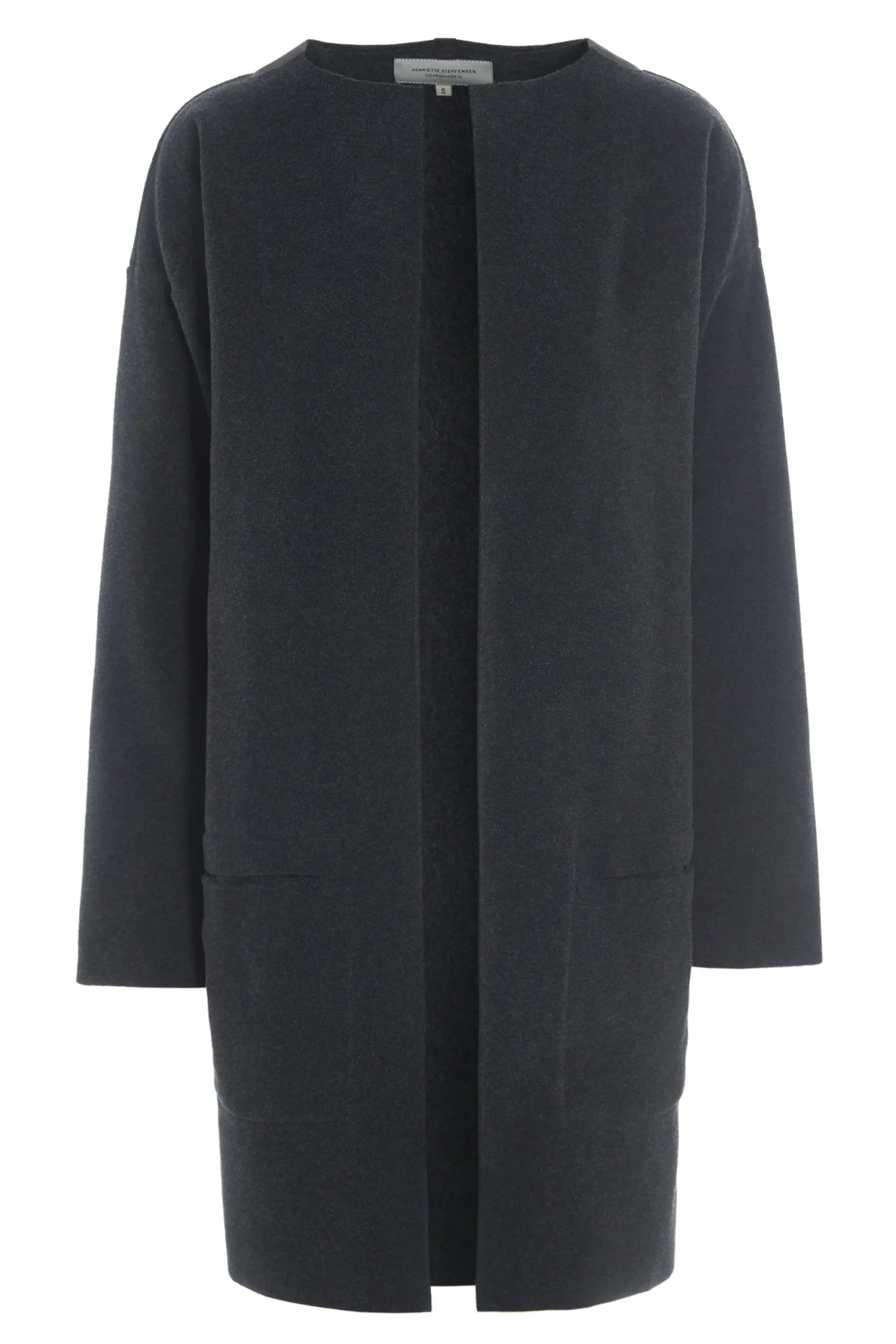 Klassisk cardigan med rund hals og lommer. Længde til midt på lårene. Vælg din normale størrelse.