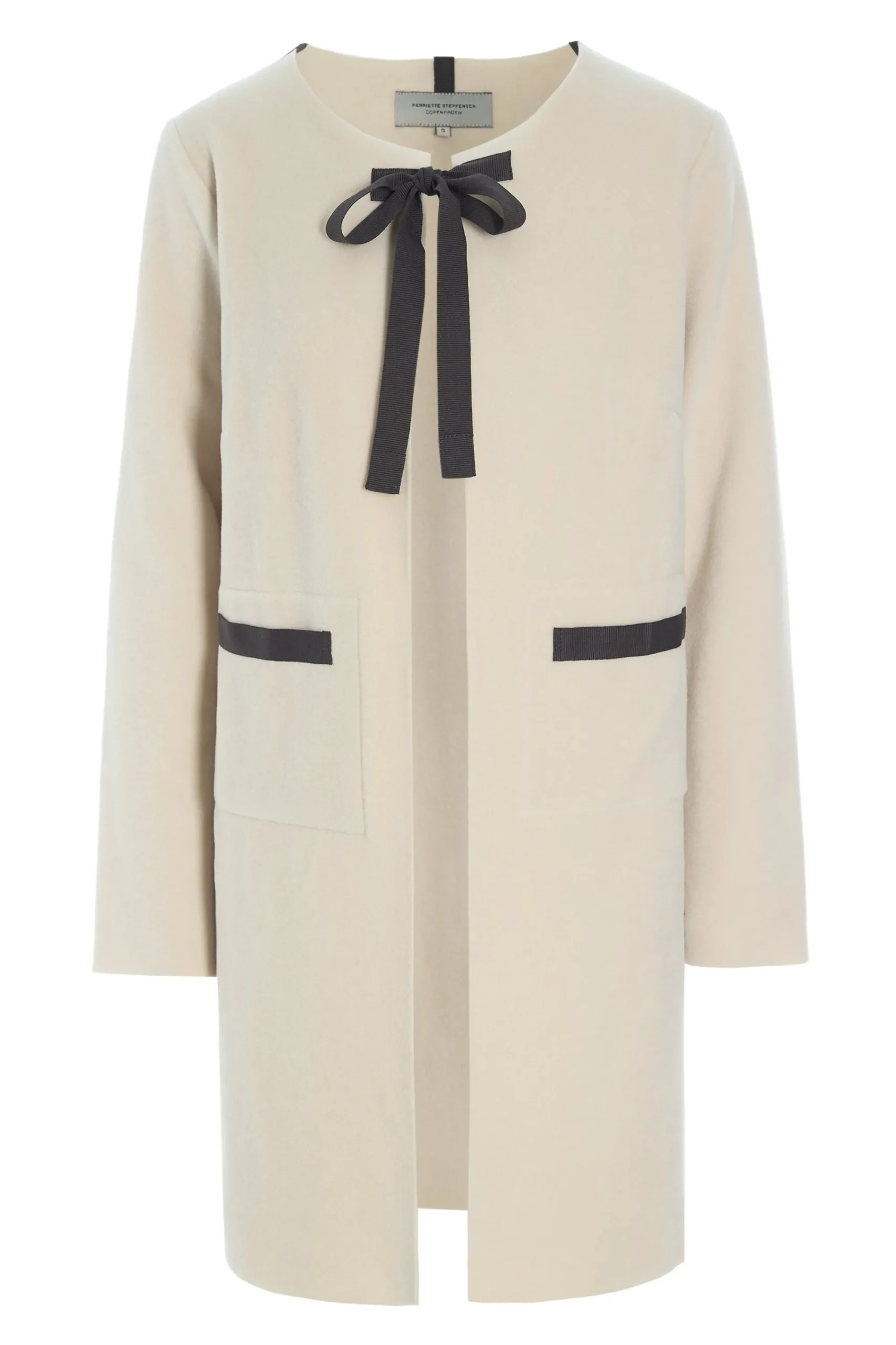 Meget klassisk og feminin cardigan inspireret af Chanel. Brug den med en nederdel, jeans, over en T-shirt samt en hvid skjorte. Længde midt på låret. Dette er en model, der vil skjule taljen. Vælg din normale størrelse.