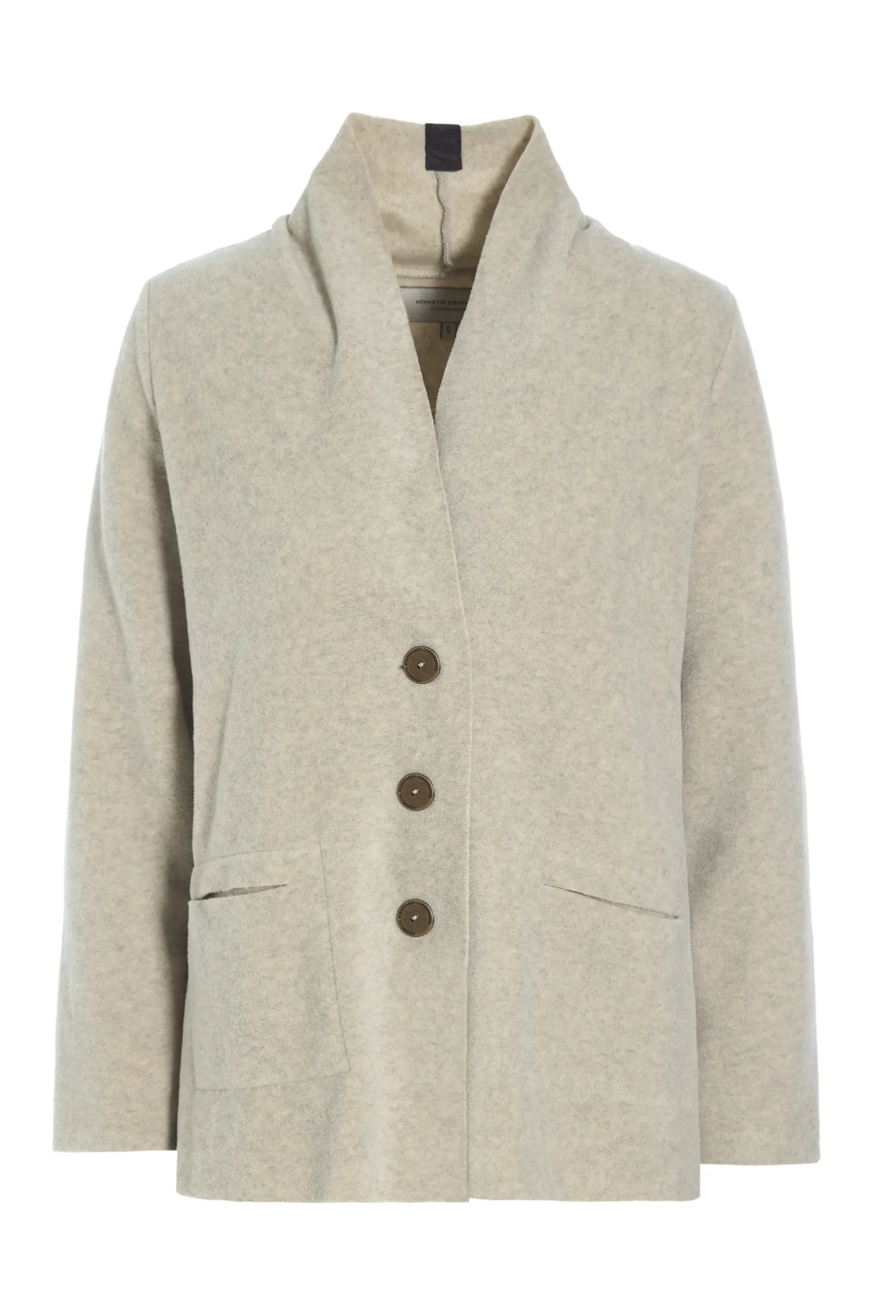 Kort cardigan med en krave, lommer og knaplukning. En kort version af bestselleren 7162. Vælg din normale størrelse som modellen, eller gå op i størrelse for en løsere pasform.