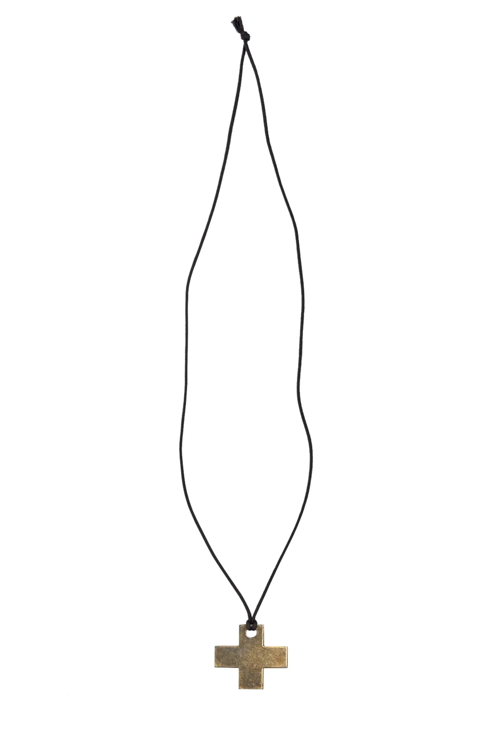 Dette klassiske Henriette Steffensen Copenhagen halskæde er et håndlavet messingkors i en 100 % bomuldsnor. Det bliver ikke enklere end det! Bland det med vores fleece- og jersey-styles, eller med din garderobe derhjemme for et cool look.