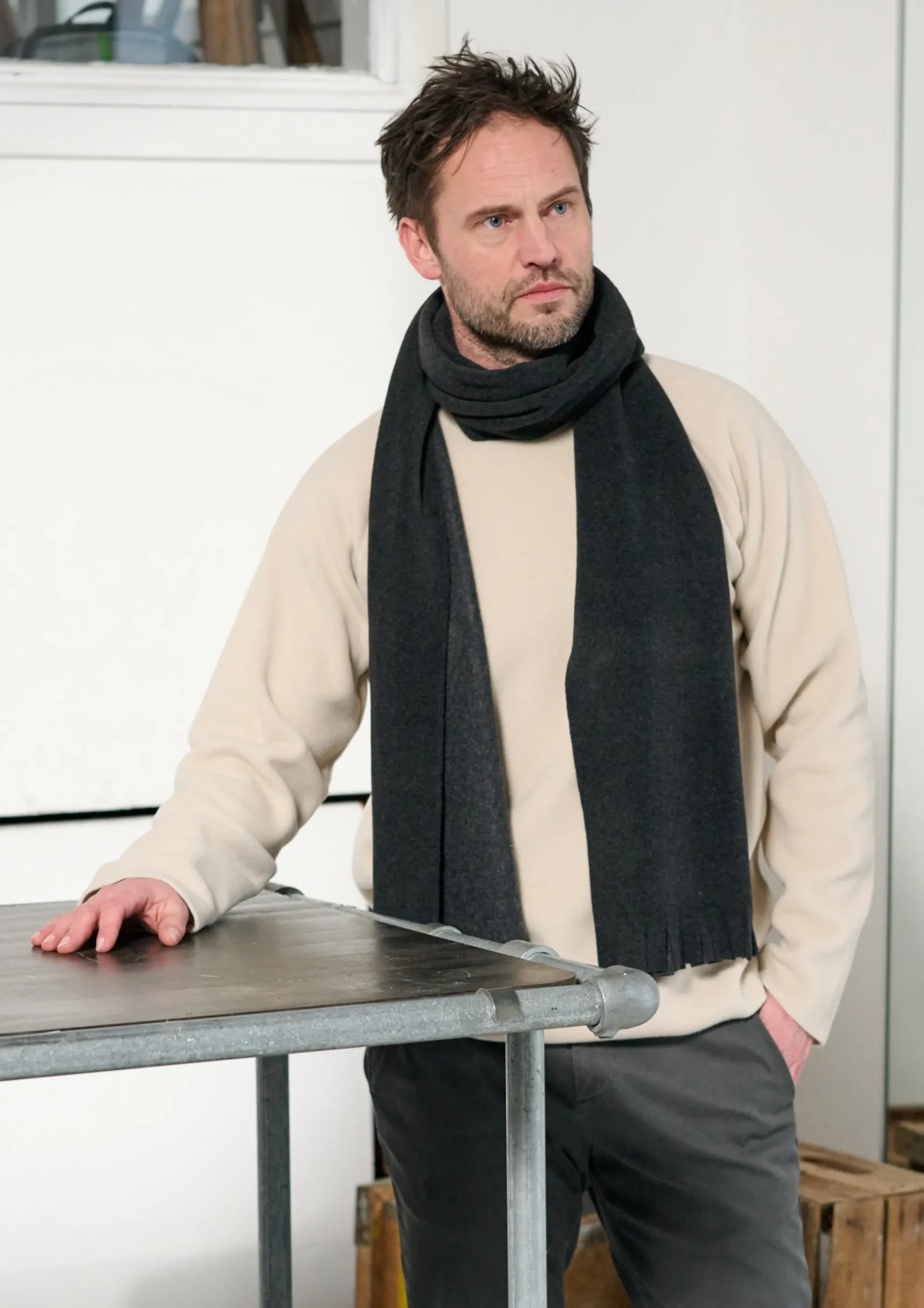 Langt tørklæde i vores særligt fremstillede fleece-materiale med klassiske frynser. Tilføj dette tidløse tørklæde til din garderobe og style det med din foretrukne jakke eller sweater.