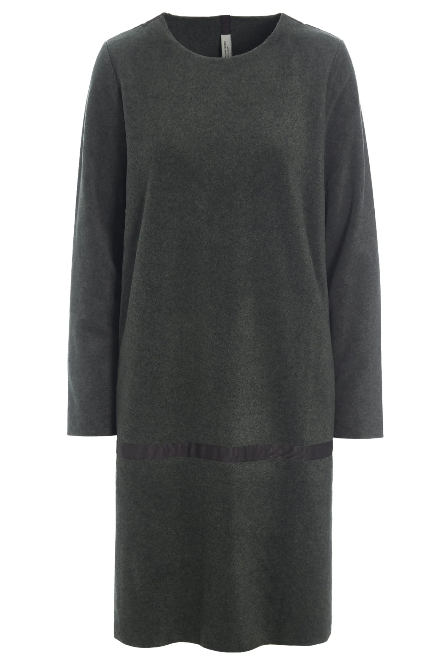 Kjolens klassiske, diskrete A-form, den runde hals og detaljen med grosgrain-bånd gør denne kjole til en smuk ledsager til hverdagsbrug og særlige lejligheder.