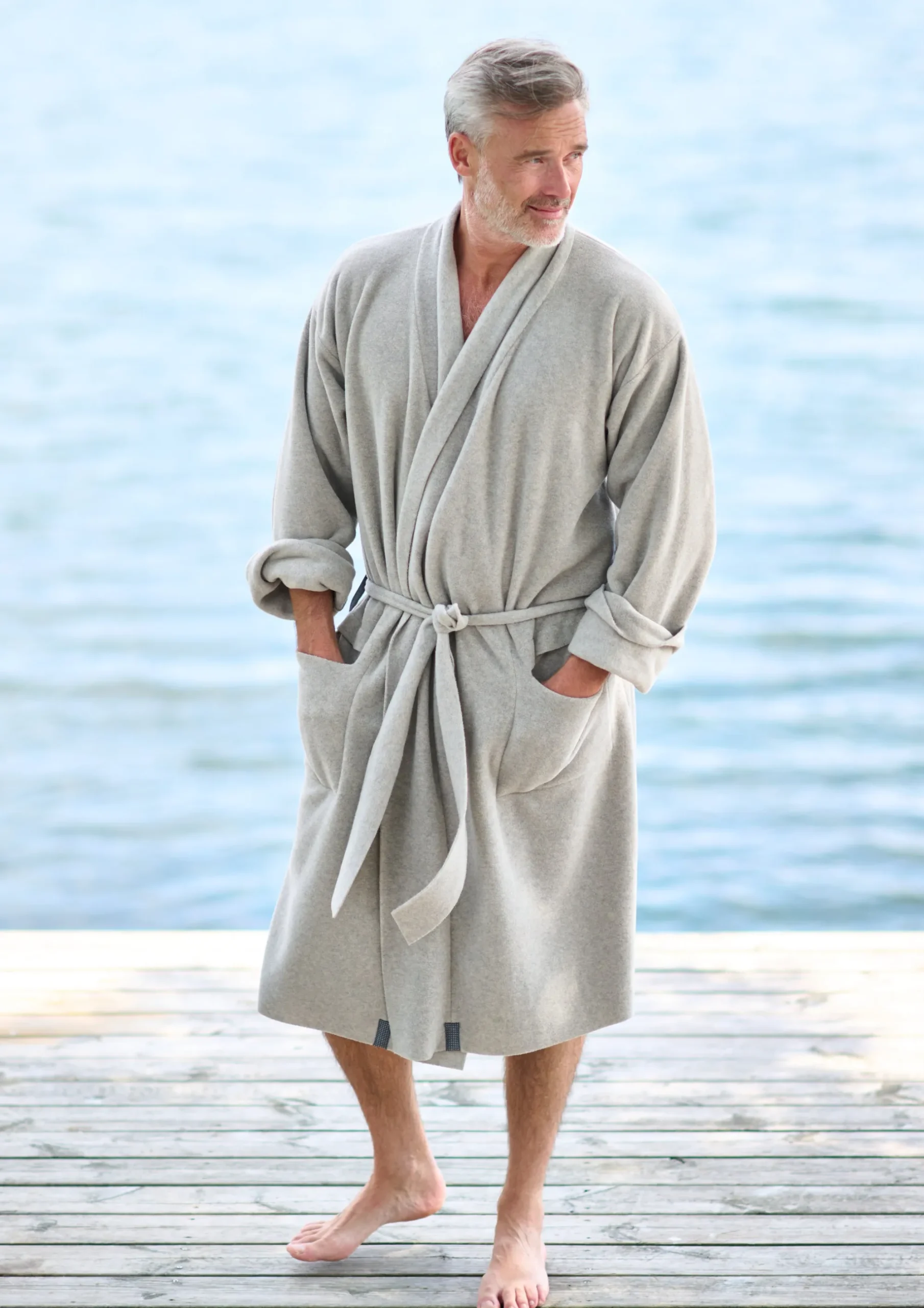 Perfekt til kølige weekenddage, hvor du vil have den hyggelige følelse til at vare hele dagen. Hvis du nyder vinterbadning, er denne badekåbe især perfekt til dig. I modsætning til traditionelle bomuldskåber bliver fleecen ikke våd og tung af vandet, og derfor køler den dig ikke ned.