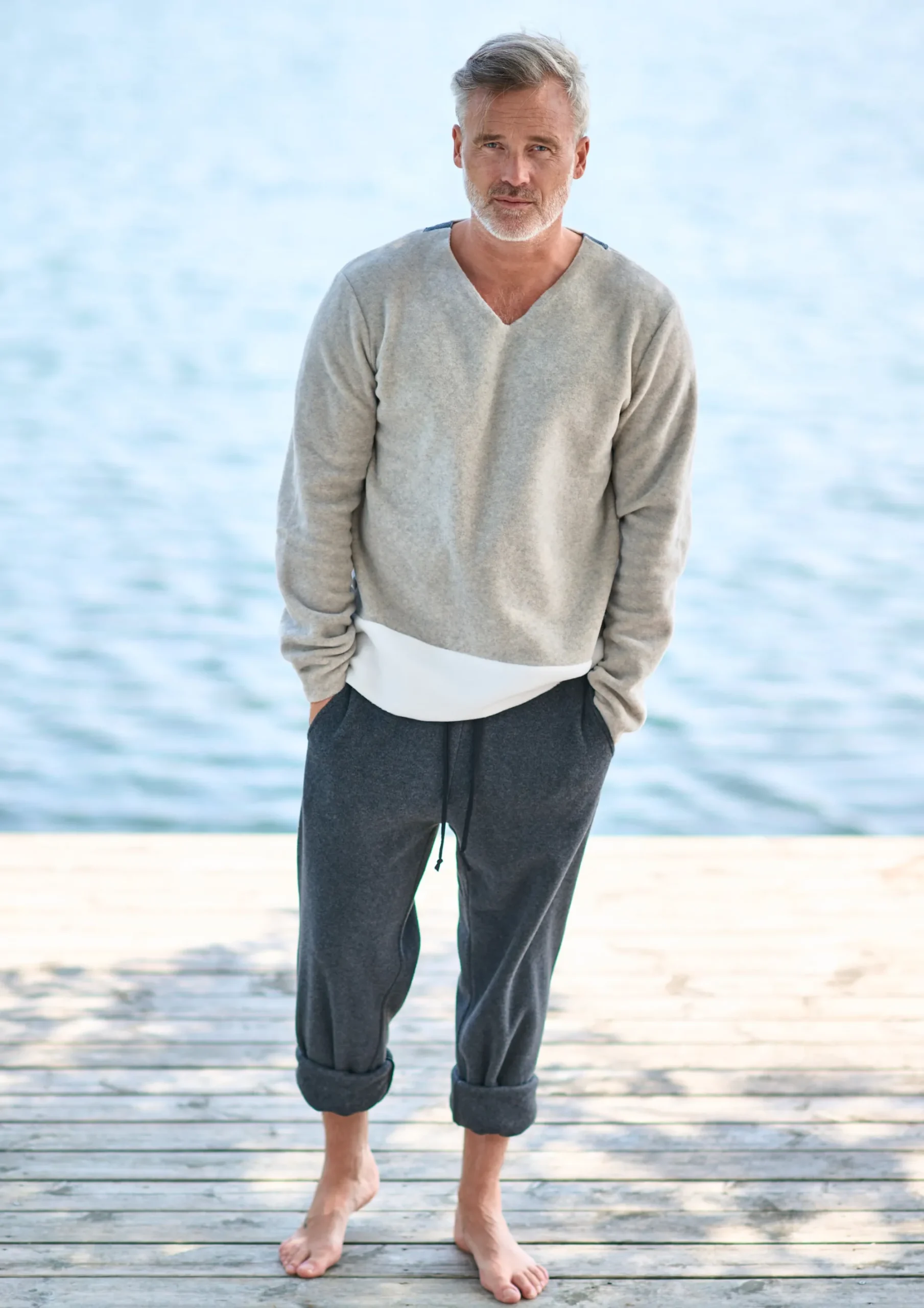 2 farvet bluse med V- hals. Find din favorit kombination og du kan få matchende bukser til i samme bløde fleece.