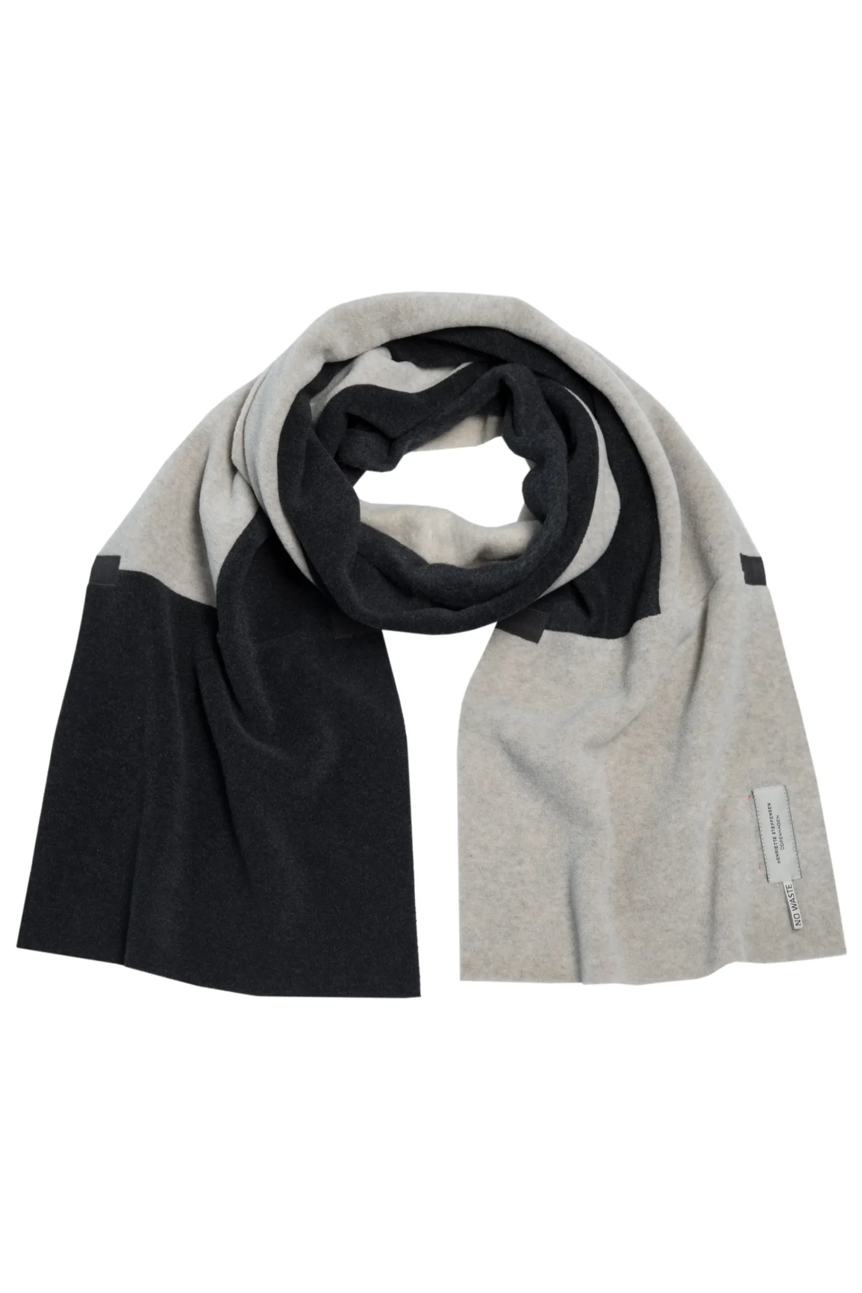 Stort tørklæde i 2 farver. Et hyggeligt tørklæde lavet af restmaterialer fra vores produktion og er derfor en del af vores NO WASTE kollektion. Pak dig ind i dette lækre bløde tørklæde og føl dig ekstra komfortable, når du skal holde dig varm. Tørklædet måler 34 x 214 cm.