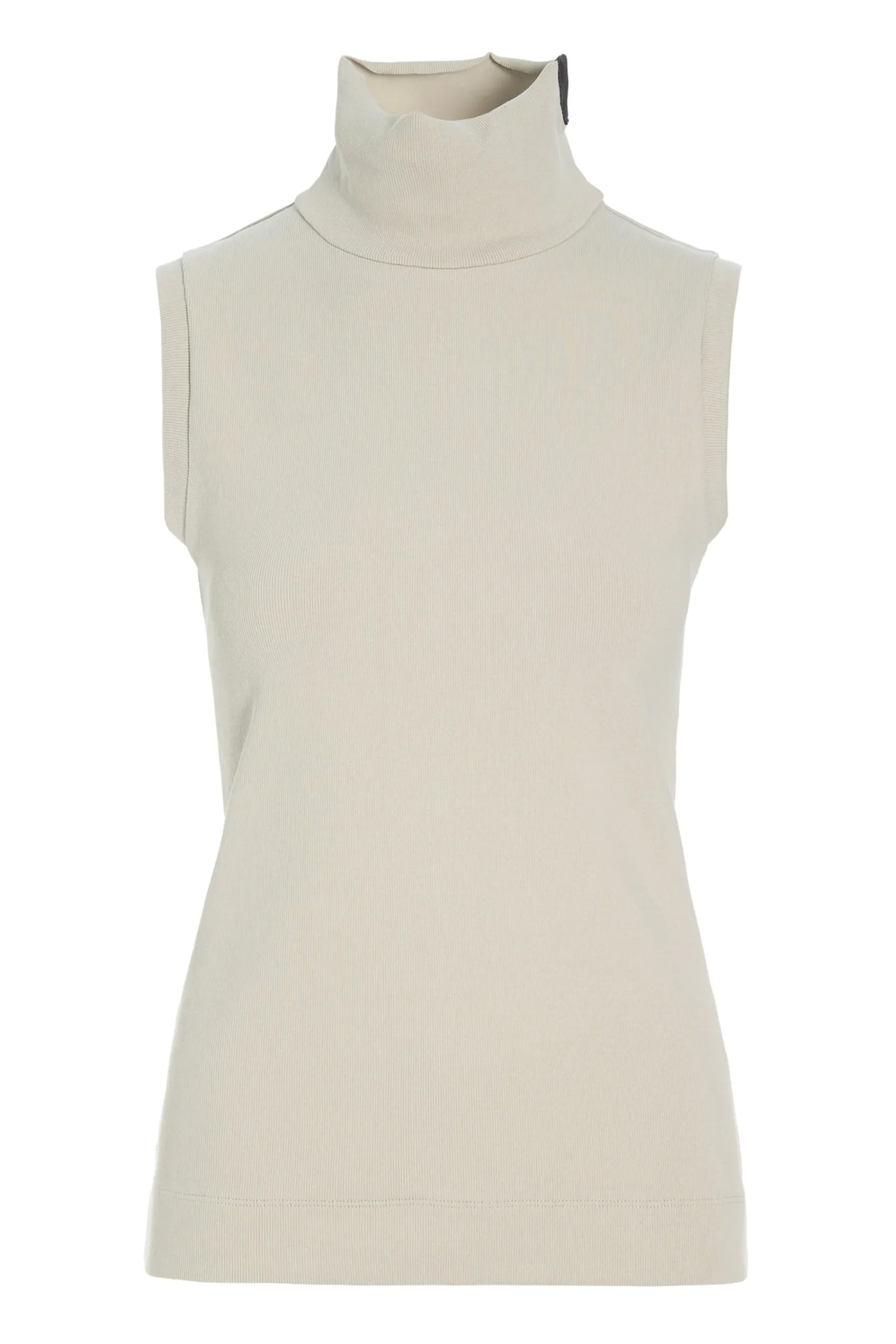Chik top, der er figursyet uden ærmer og høj rund hals. Toppens elegante look gør den perfekt under en blazer.