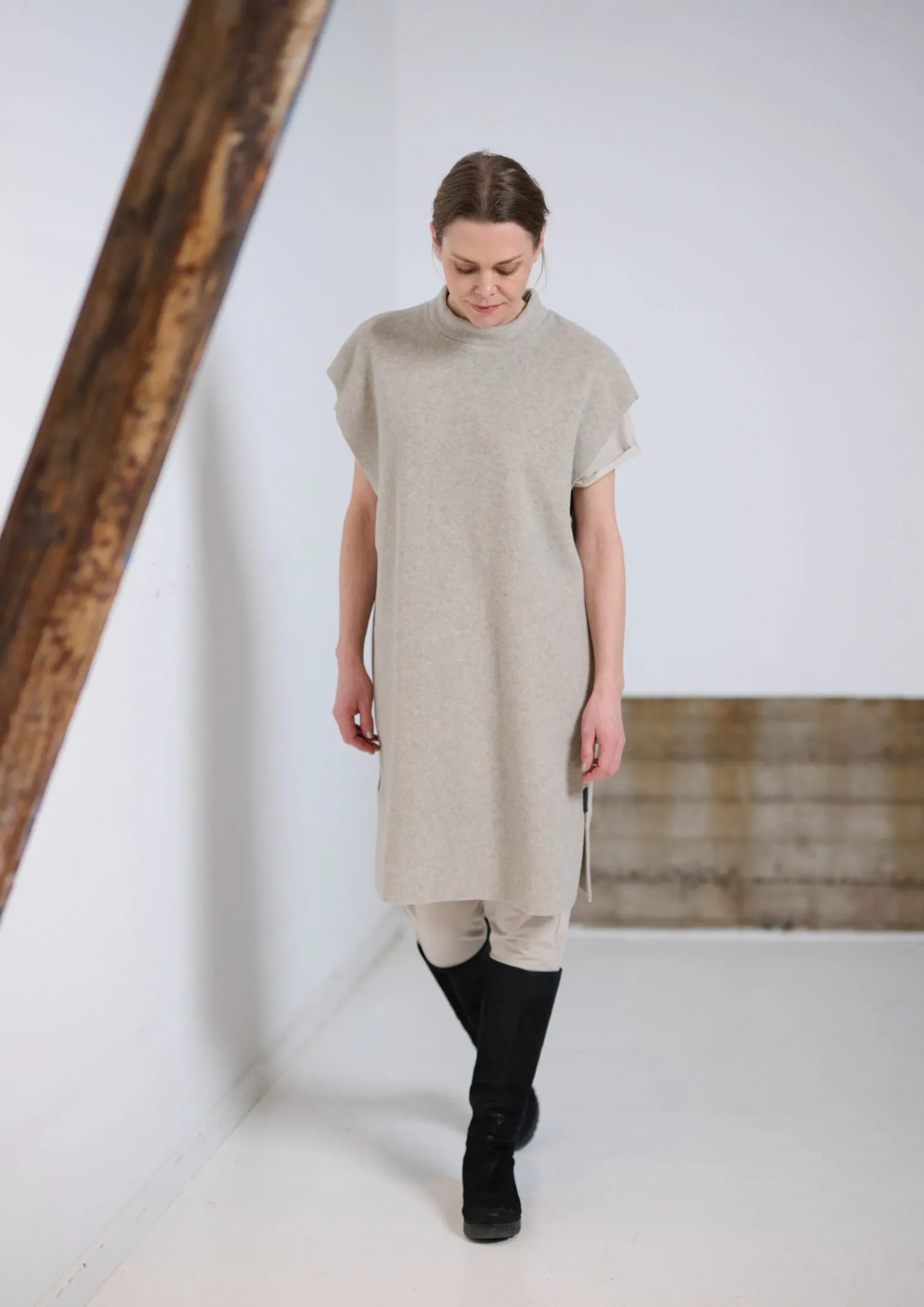 Ærmeløs tunika med grosgrain bånddetaljer og slidser i siden.