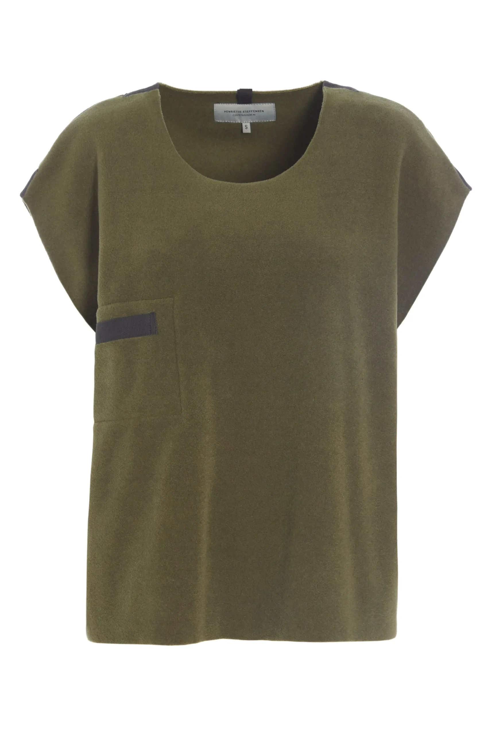 Denne klassiske pullover-vest har en lille brystlomme, en rund hals og en løs pasform.
