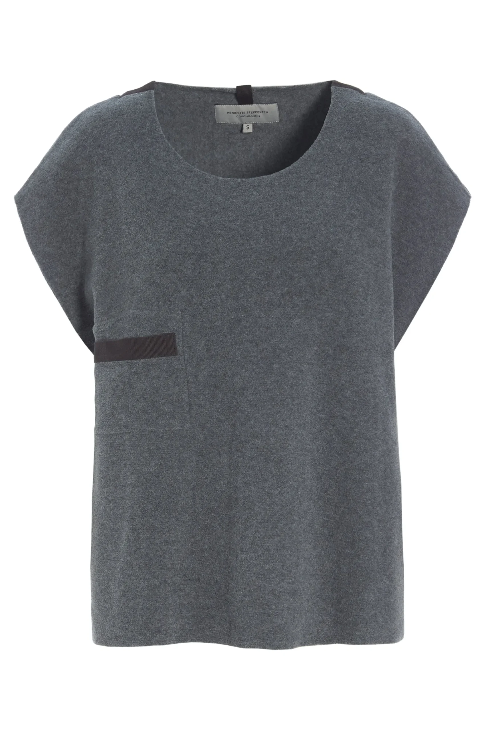 Denne klassiske pullover-vest har en lille brystlomme, en rund hals og en løs pasform.