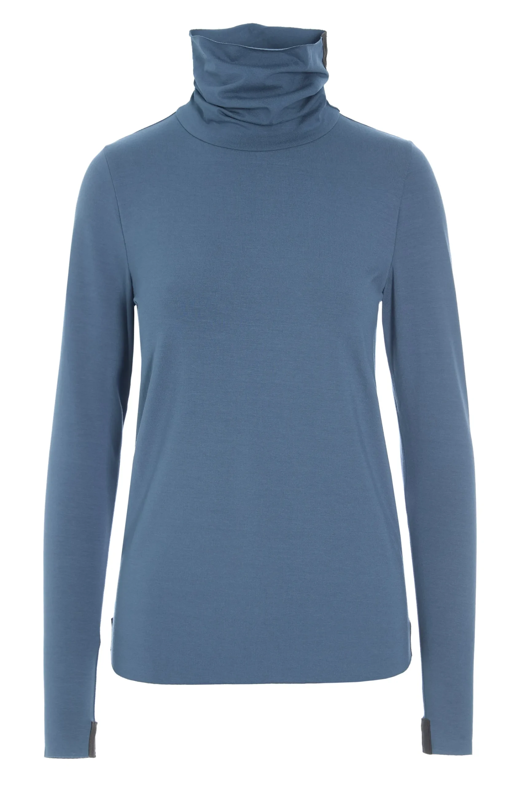 Meget langærmet jerseybluse i tætsiddende pasform med høj hals. Den klassiske høje hals er sofistikeret og tidløs, og de smalle ærmer bidrager til det elegante udseende.