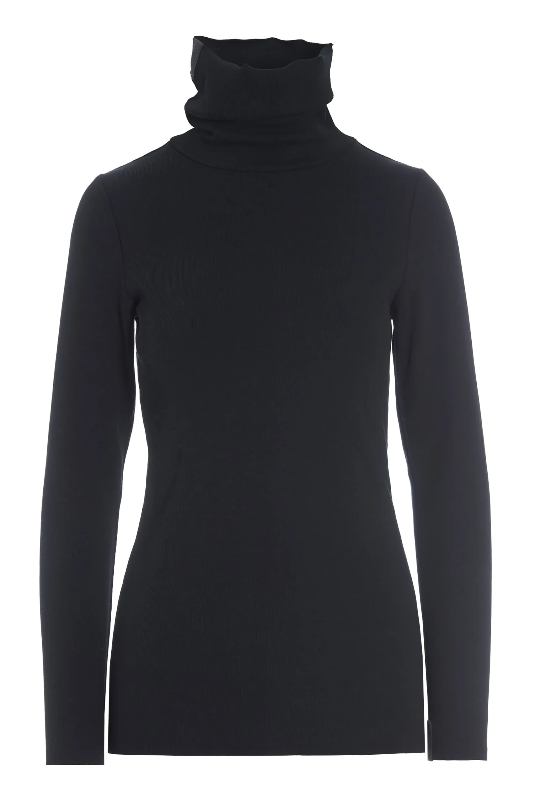 Langærmet bluse med ekstra længde på kroppen og ærmer i økologisk bomuldsrib.
