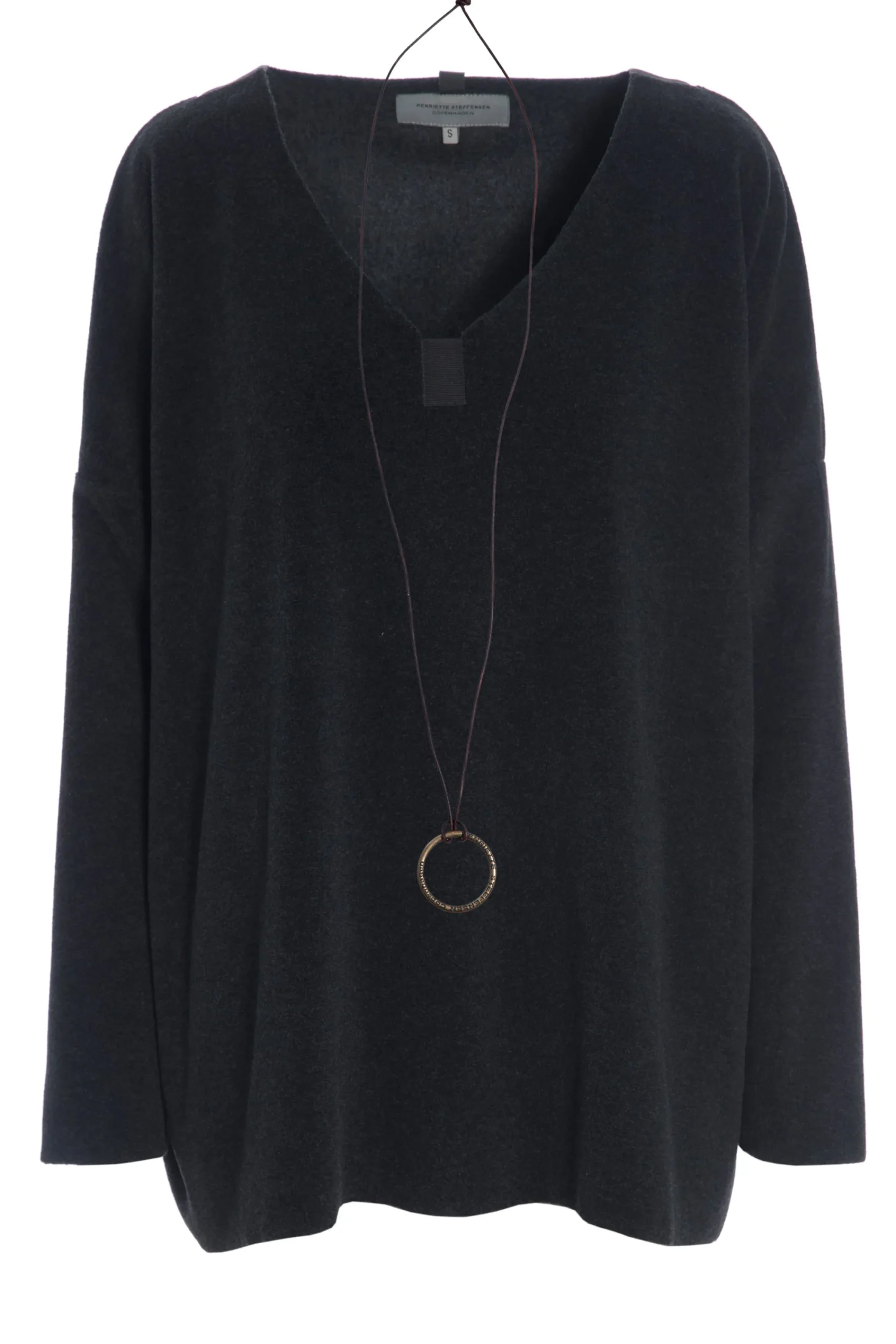 Oversize pullover med V-hals, grosgrain bånddetaljer og vores signatur smykke