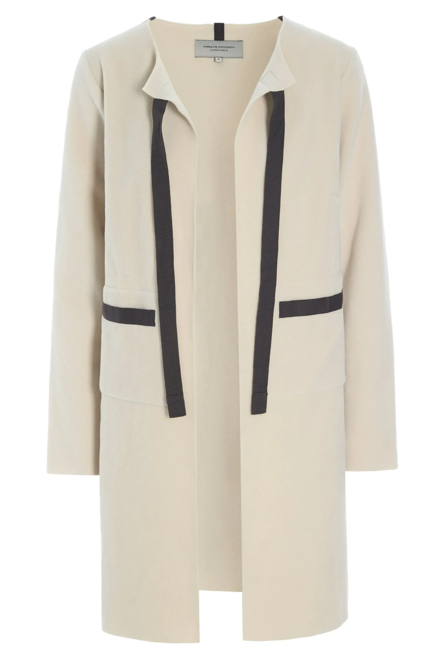 Meget klassisk og feminin cardigan inspireret af Chanel. Brug den med en nederdel, jeans, over en T-shirt samt en hvid skjorte. Længde midt på låret. Dette er en model, der vil skjule taljen. Vælg din normale størrelse.