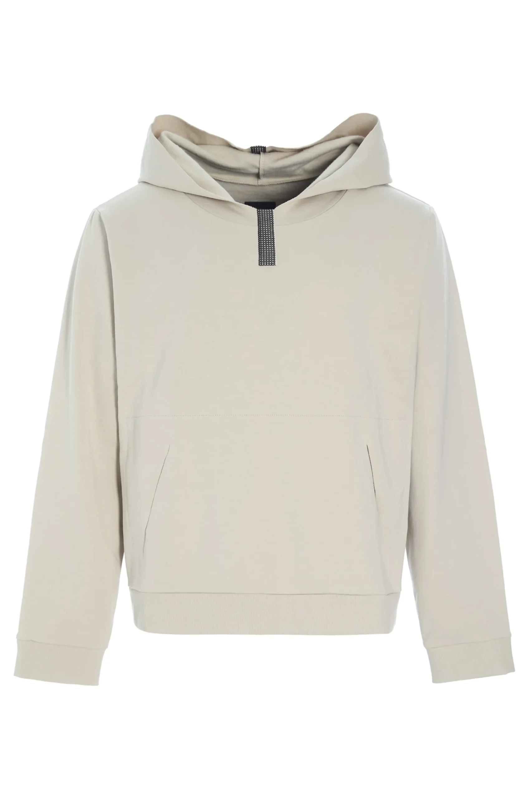 Klassisk hættetrøje med lomme foran, hætte med rå kanter og elastik rib langs livet, samt ærmerne. Hættetrøjen kombinerer de klassiske detaljer ved en hoodie med twist af rå elementer.
