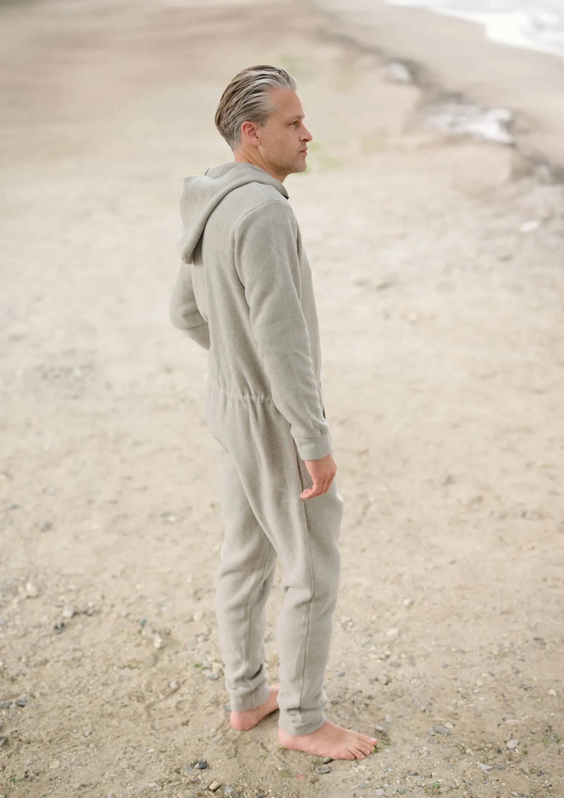 Rummelig og komfortabel jumpsuit med messinglynlås, bindebånd i taljen, hætte og lommer. Nyd den bløde følelse i denne heldragt. Perfekt at putte sig i efter en tur i det kolde hav!