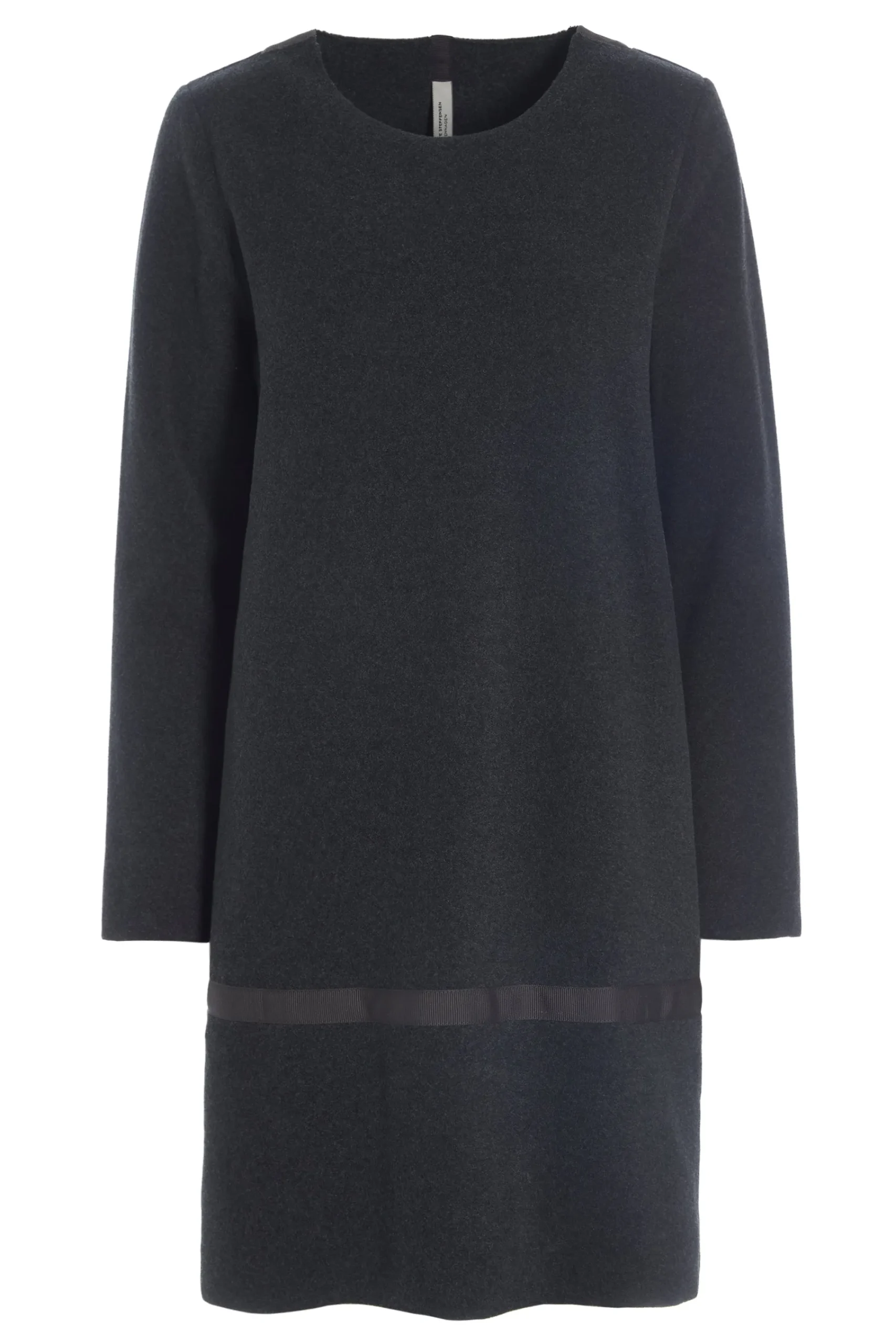 Kjolens klassiske, diskrete A-form, den runde hals og detaljen med grosgrain-bånd gør denne kjole til en smuk ledsager til hverdagsbrug og særlige lejligheder.