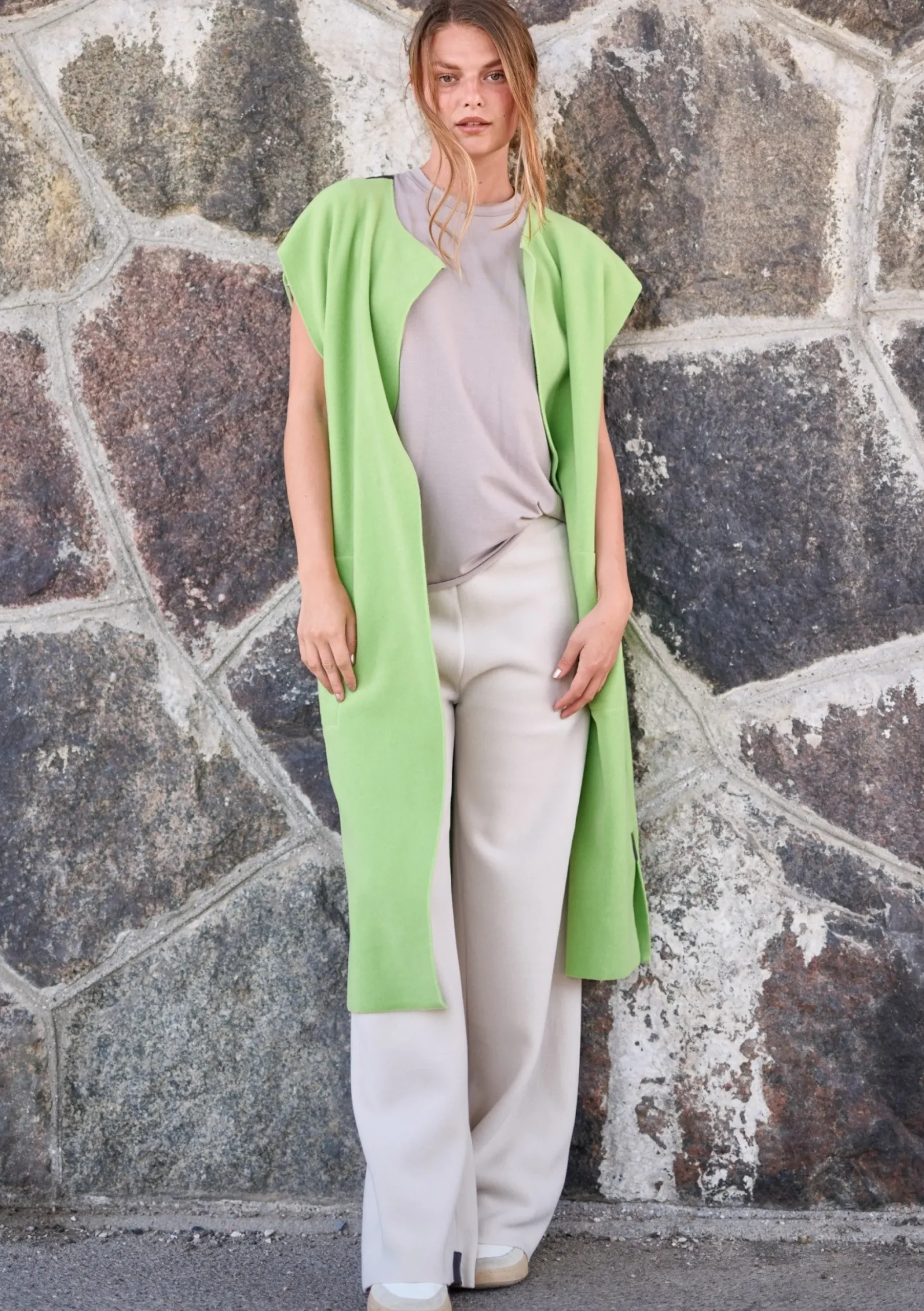 Lang vest i løs pasform med store lommer, sideslidser og store ærmegab, som gør det muligt at style med en trøje ovenpå.