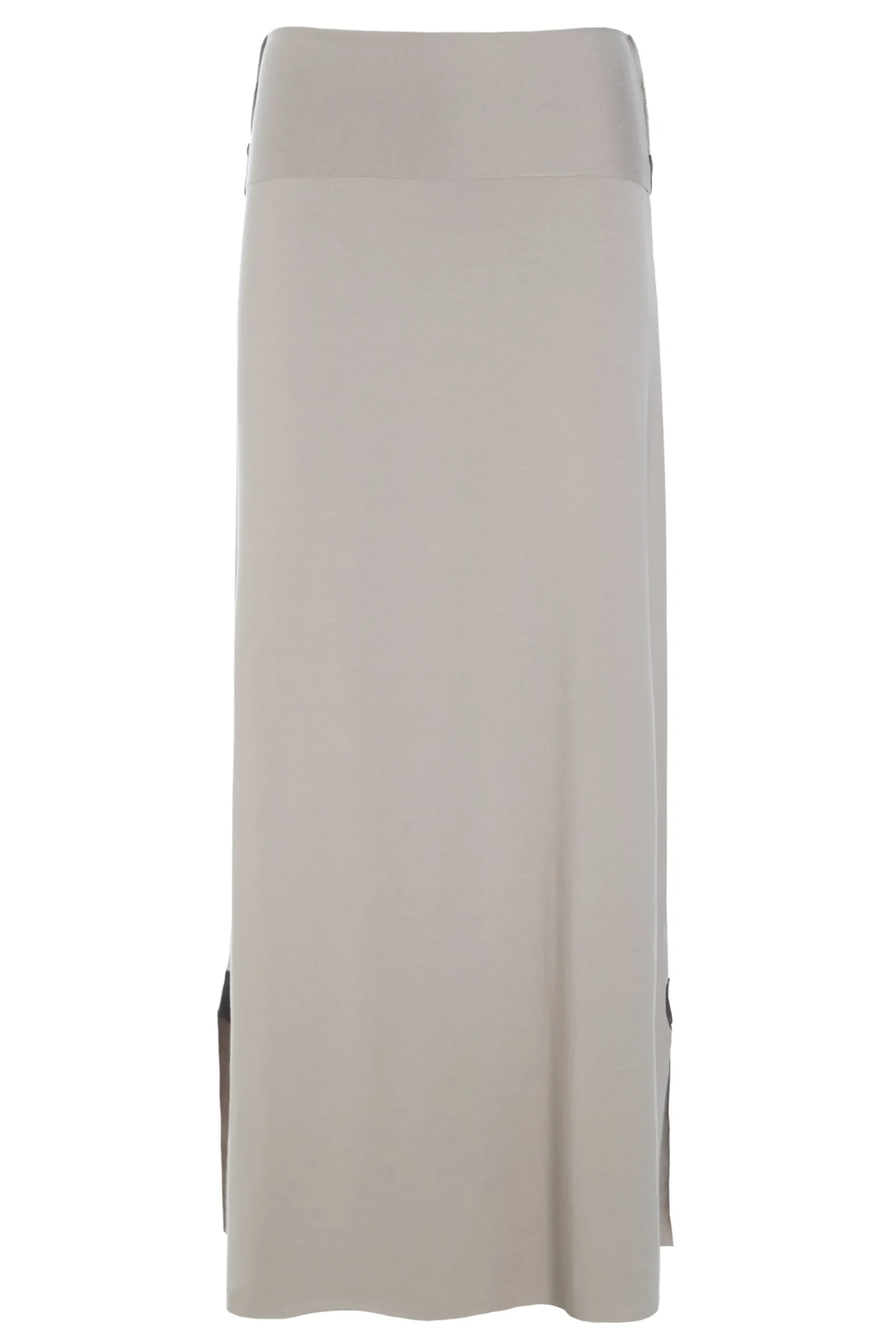 Lang nederdel med slidser. Nederdelen kan foldes dobbelt rundt om taljen, og du bestemmer selv hvor meget. Designet er tætsiddende hvis du ikke bryder dig om det, skal du gå en størrelse op.