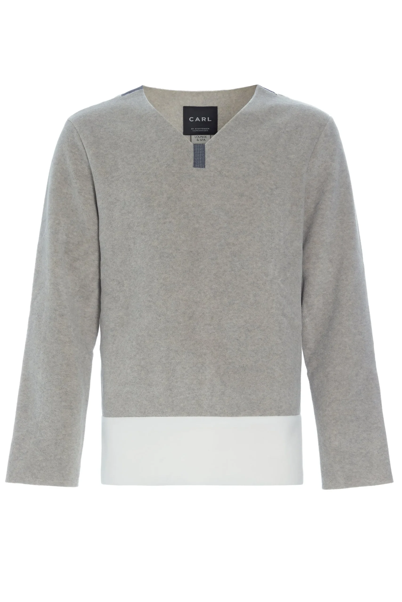 2 farvet bluse med V- hals. Find din favorit kombination og du kan få matchende bukser til i samme bløde fleece.