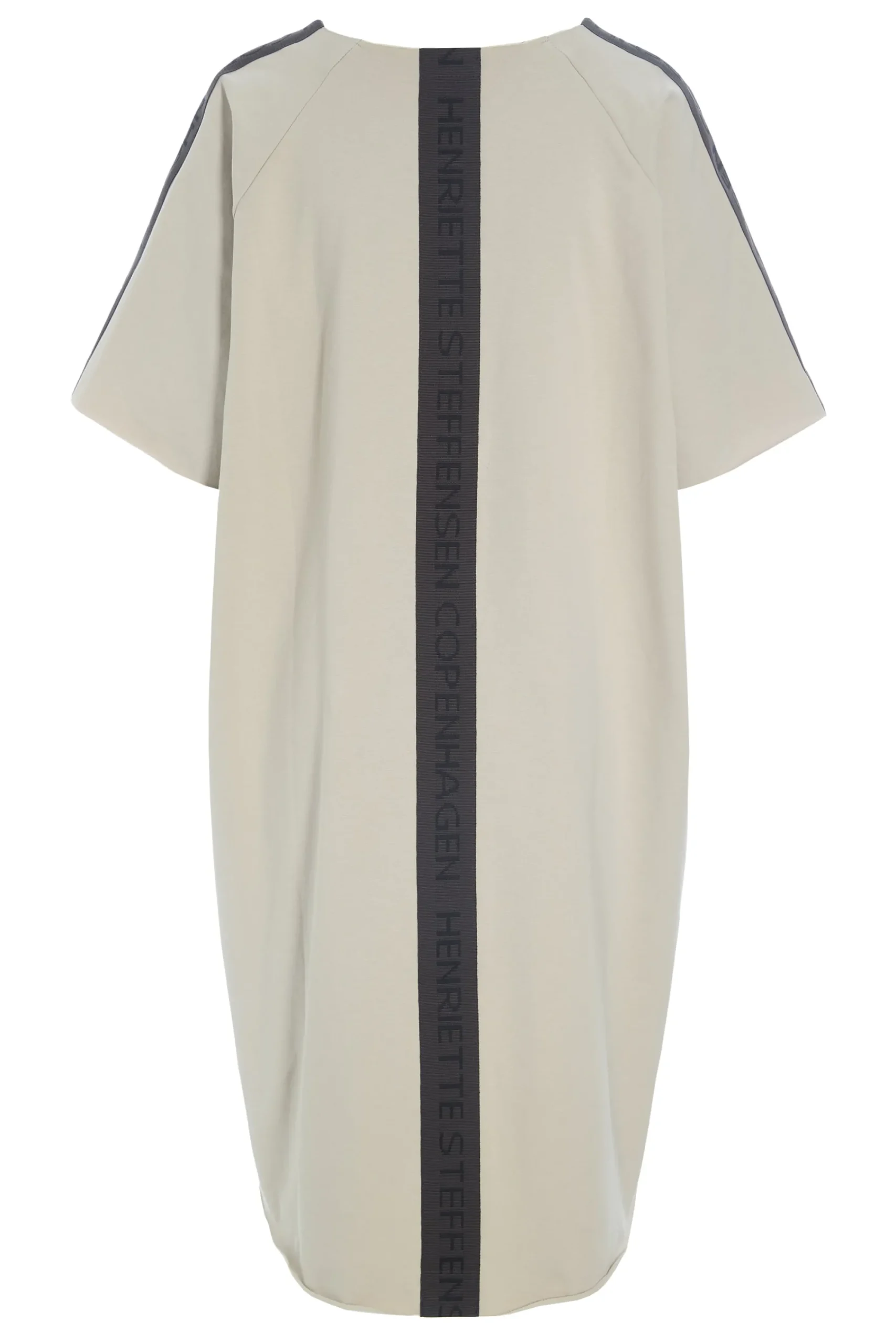 Kasseformet kjole med logo-bånd på bagsiden. De rå kanter giver en flot kontrast til kjolen. Denne kjole vil være et must-have i din garderobe. Det bliver din go-to kjole, når du ikke ved, hvad du skal have på. Brug den på kontoret, når du slapper af, eller style den med dit yndlingssmykke, for når du skal klæde dig pænt på.