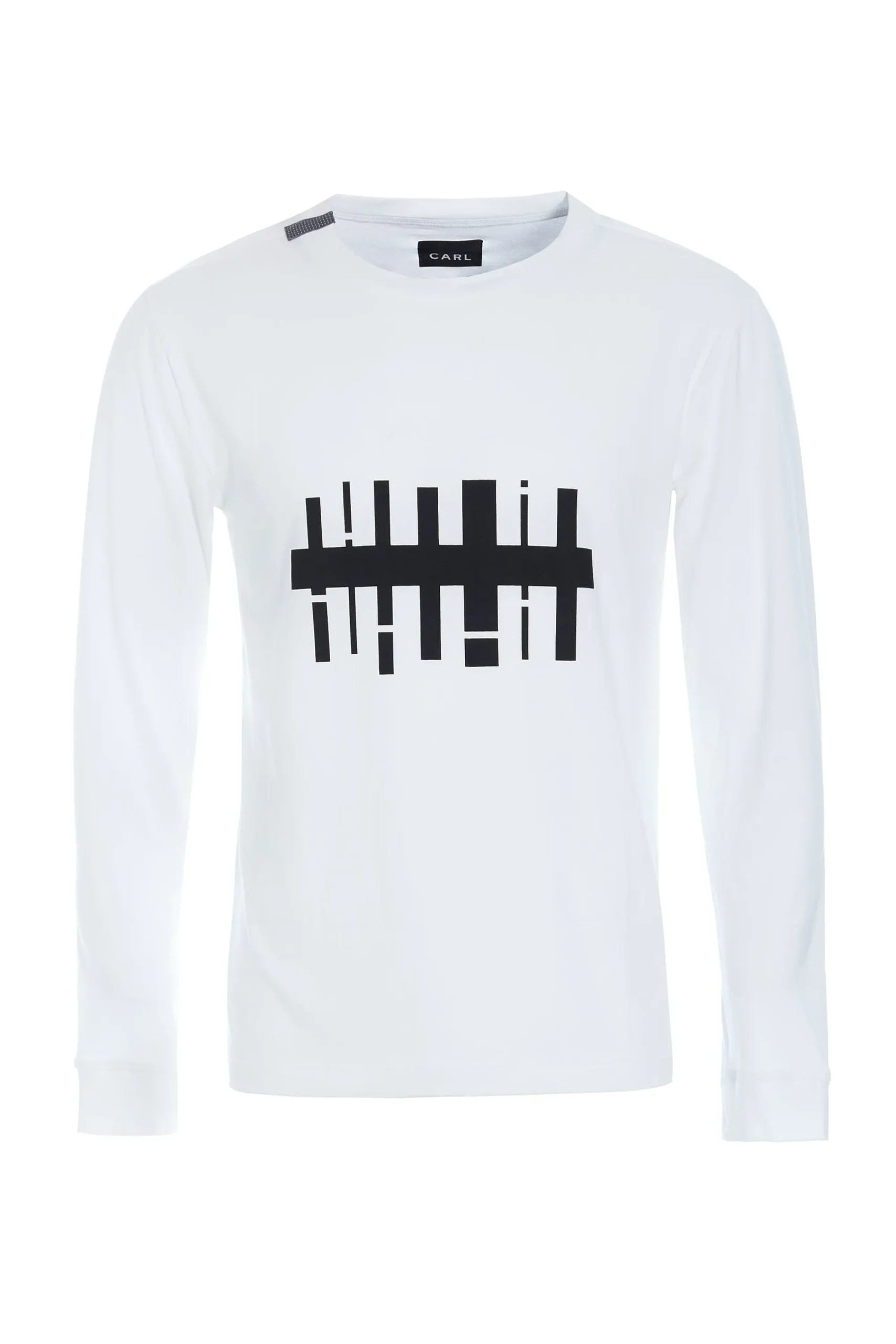 Luksus t-shirt med grafisk tryk, rund hals og lange ærmer. Ærmet er færdigt med en lille ribkant, som sikrer, at ærmet holder formen. Meget blød kvalitet, der bevarer sin form og bløde fornemmelse vask efter vask.