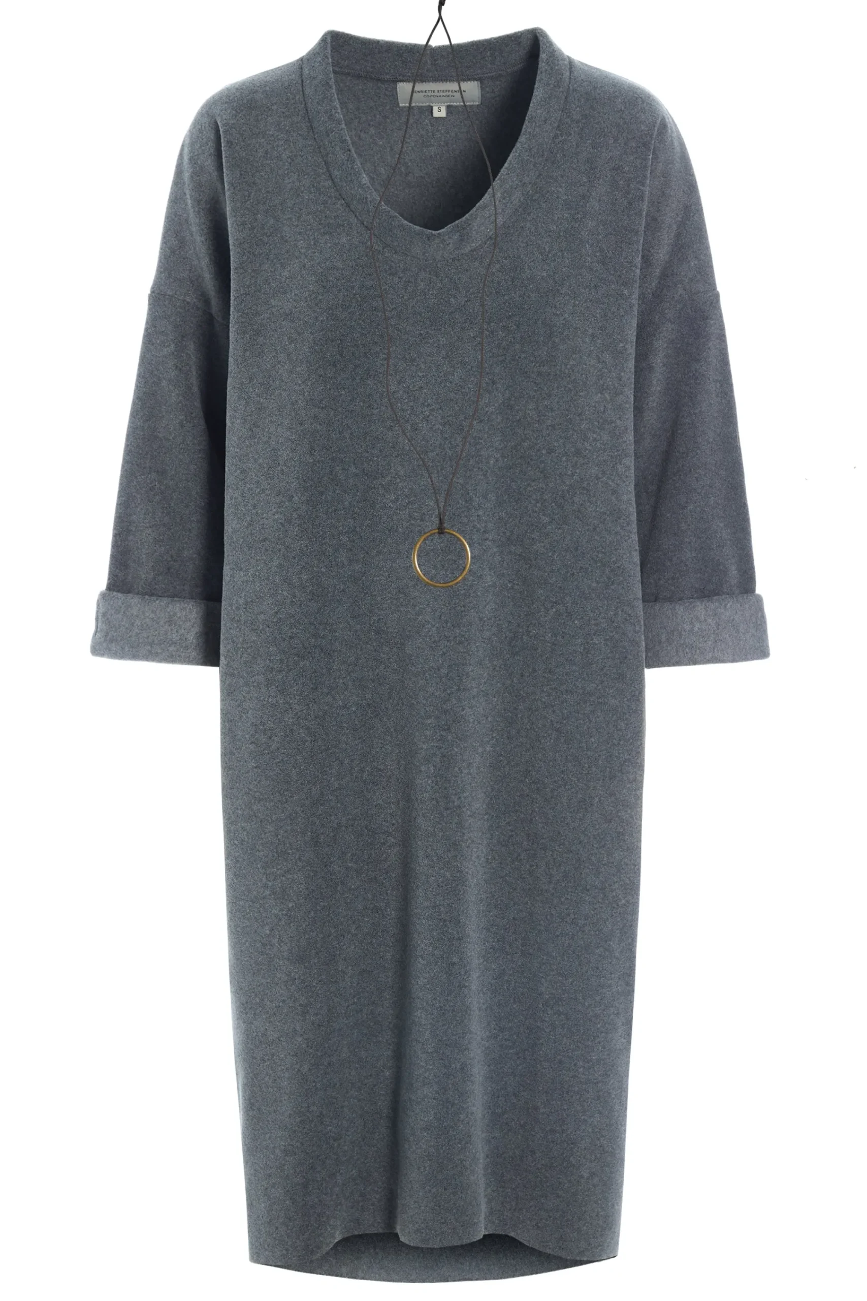 Oversize tunika med cool hals. En virkelig hyggelig tunika til mange formål. Hvis du vil have det oversized look, skal du vælge din normale størrelse, hvis ikke kan du gå 1 størrelse ned. Designet er også passende til en stor barm. Halskæden medfølger.