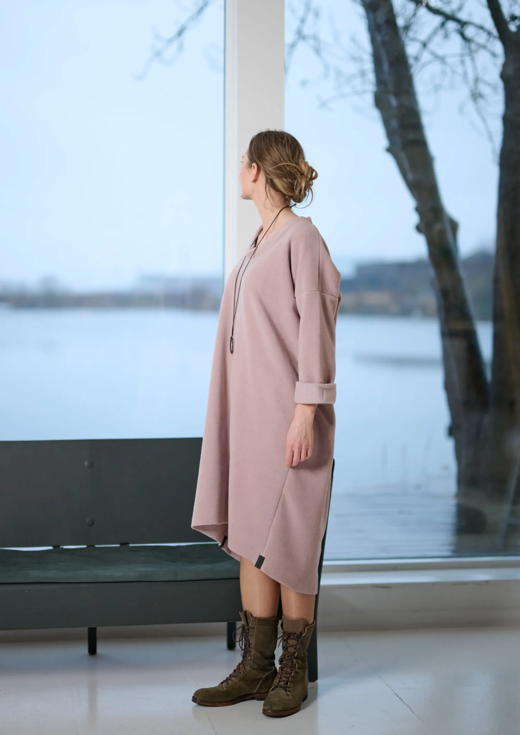 Oversize tunika med cool hals. En virkelig hyggelig tunika til mange formål. Hvis du vil have det oversized look, skal du vælge din normale størrelse, hvis ikke kan du gå 1 størrelse ned. Designet er også passende til en stor barm. Halskæden medfølger.