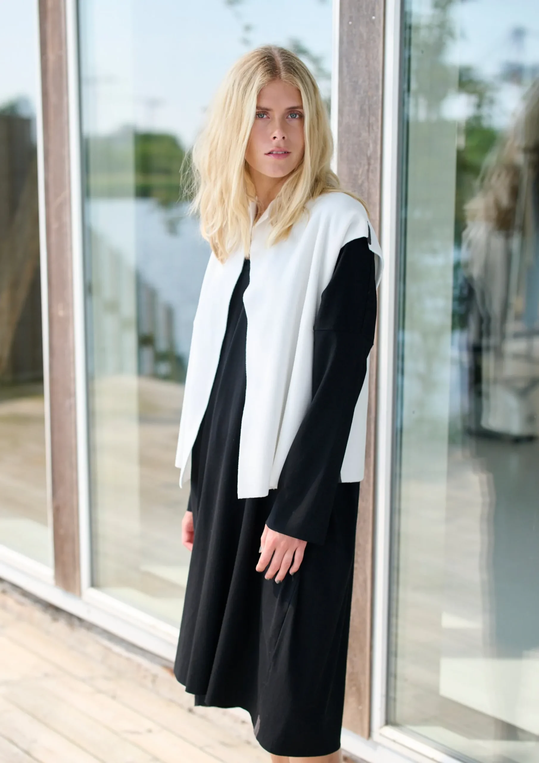 Denne bløde vest er perfekt til mellem årstiderne for at holde varmen. Bær den over en pæn skjorte og luk den med et bælte for et mere feminint look. Du kan vælge mellem forskellige farver, og den kantede form gør denne vest velegnet til både afslapning og hverdagsbrug.